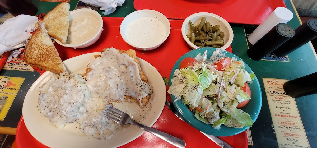 The food was extremely good. There was one issue that kept it from being a 5 star experience. Putting my wife's side salad with her hot meal. The salad was uneatable by the time it got home. The chicken fried steak dinner was amazing! Baked potato was not the best but the mashed potatoes and gravy were really good.