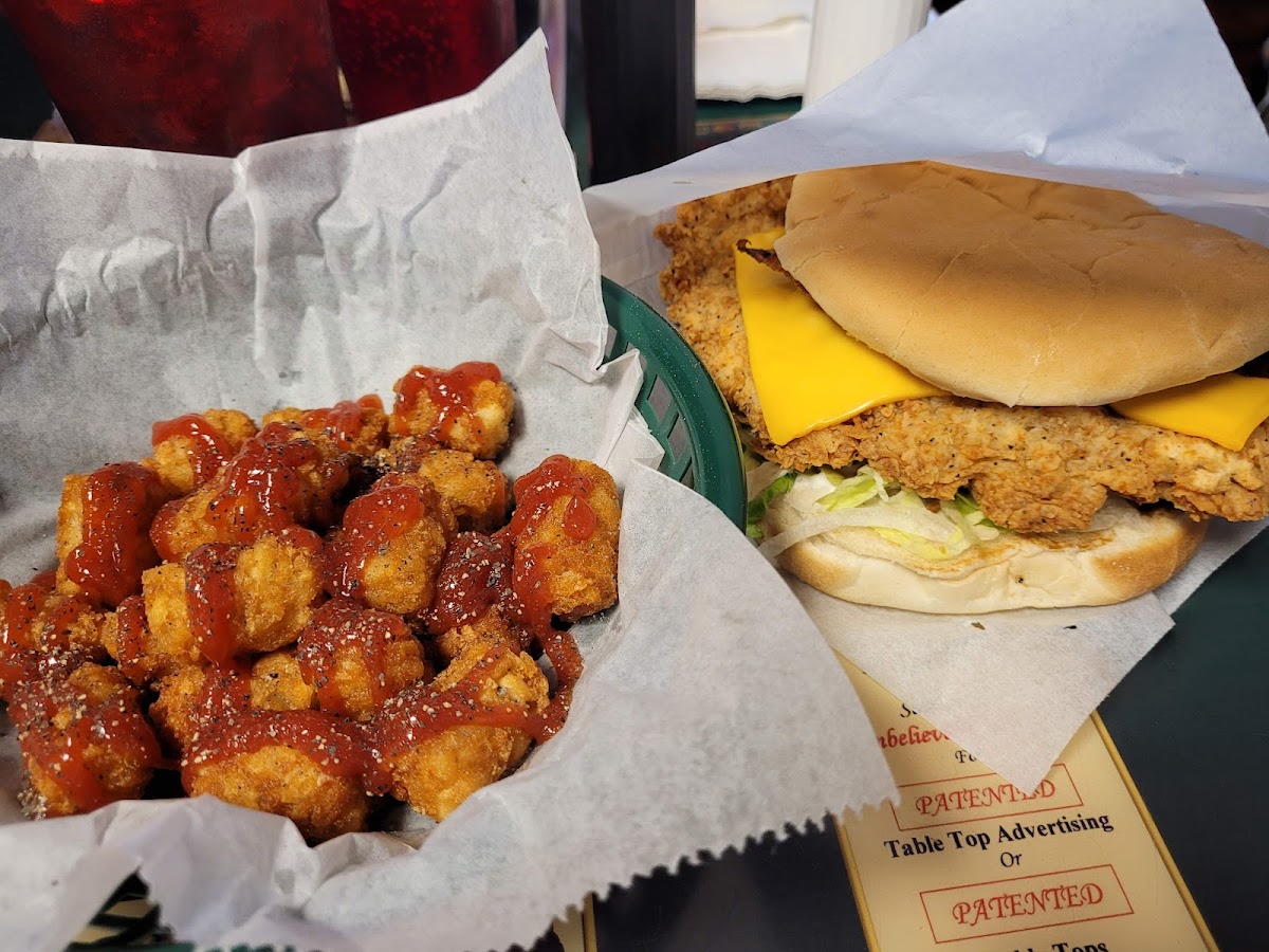 The restaurant had a homely feeling and was taken there by friends who wanted me to try their Chicken Fried Steak. They claimed it was the best in town. I have to agree it was delicious and the food tasted home made with love. I had never tried this Southern food and it really was very good. The mash potato was a great accompaniment to the steak as well as the chilli tots. The burger also generous in size.